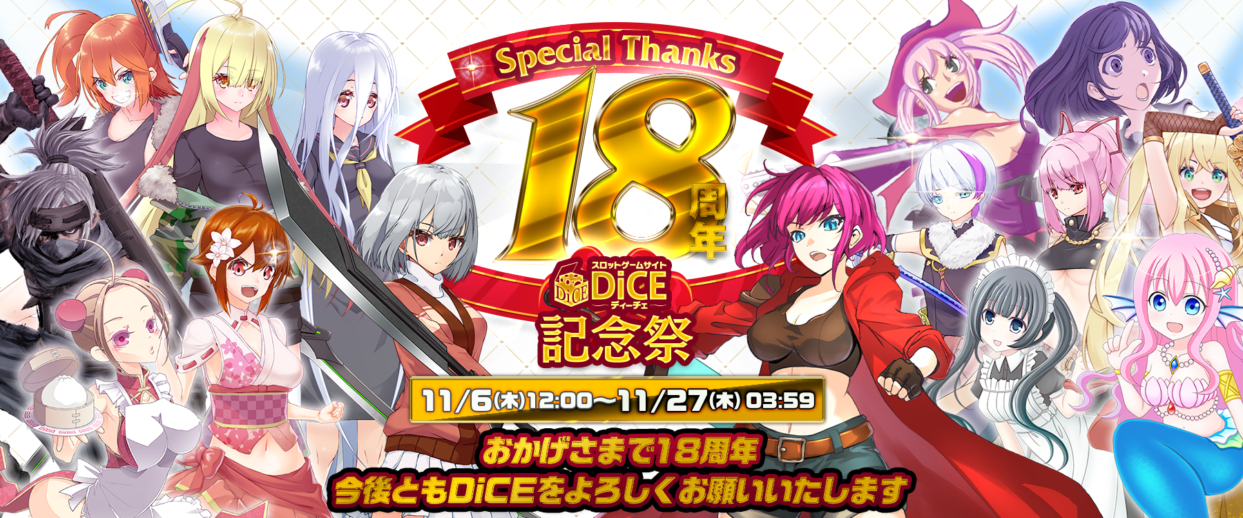 18周年通常アバター受取期間:11/6(木) 12:00 〜 11/27(木) 03:59