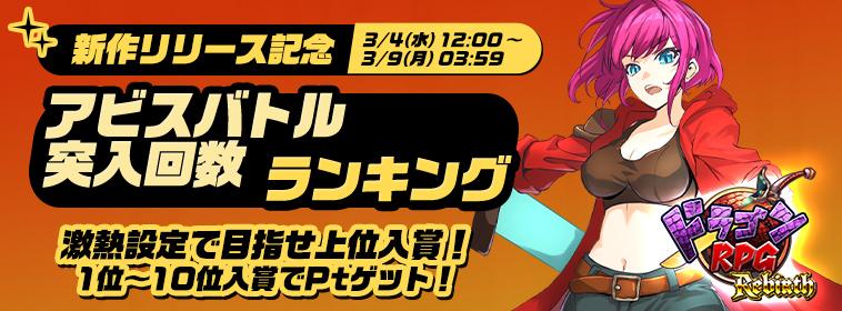 内容:新作「ドラゴンRPG:Rebirth」アビスバトル突入回数ランキング!