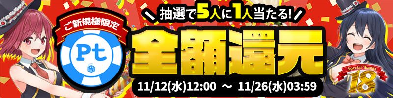 【期間限定×ご新規様限定】抽選で5人に1人当たる!Pt全額還元キャンペーン♪