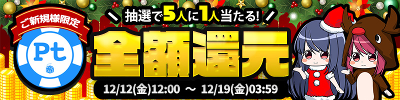 【期間限定×ご新規様限定】抽選で5人に1人当たる!Pt全額還元キャンペーン♪