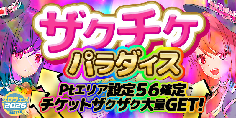 【Ptエリア56確定】ザクチケパラダイス☆Ptエリア<設定56確定>でチケットザクザク大量GET!