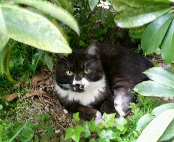この画像は、ちと古いものです。現在、くろにゃんは頭にケンカ傷があります(やっと毛が生えてきたところ)。ど