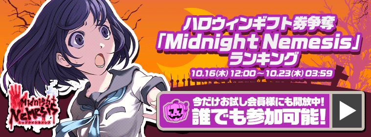 選べるハロウィンギフト争奪「Midnight Nemesis」EFMN継続ゲーム数ランキング開催!