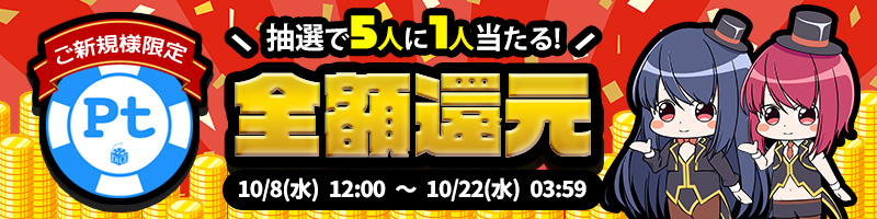 【期間限定×ご新規様限定】抽選で5人に1人当たる!Pt全額還元キャンペーン♪