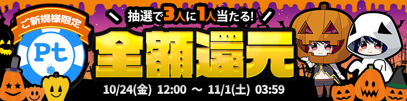 【ご新規様限定】抽選で3人に1人当たる!Pt全額還元キャンペーン♪