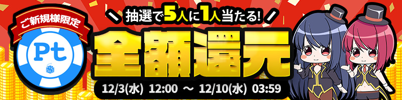 【期間限定×ご新規様限定】抽選で5人に1人当たる!Pt全額還元キャンペーン♪