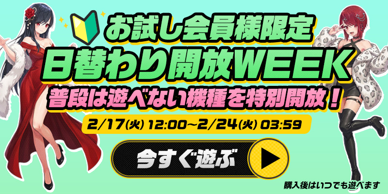 期間中は毎日1機種ずつ日替わりでお楽しみいただけます。