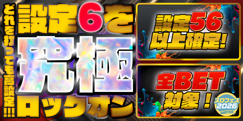 今回の「設定6を究極ロックオン」は【設定56】以上確定のスペシャルバージョンで開催!