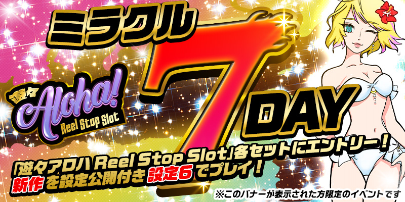 2時間×7セット合計14時間【設定6】確定のミラクル激アツイベントへ参加可能!