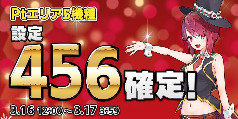 12時〜Ptエリアで対象の5機種が【設定456】確定!
