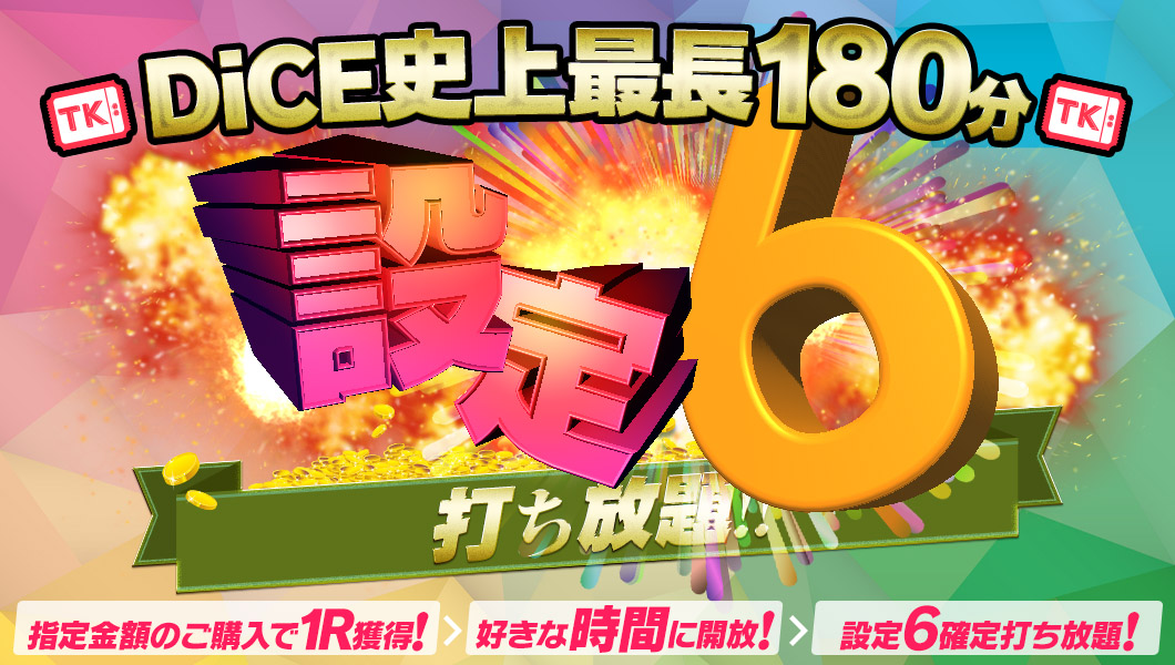 R開放型【設定6】打ち放題にDiCE史上最長の180分=3時間が登場!!