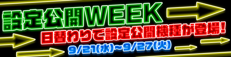 【設定1排除のALL設定&設定公開】設定公開WEEK!毎日日替わりで設定公開機種が登場!