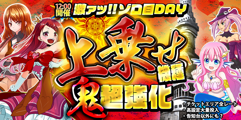 ゾロ目の日「上乗せ機種鬼強化デイ」開催です!